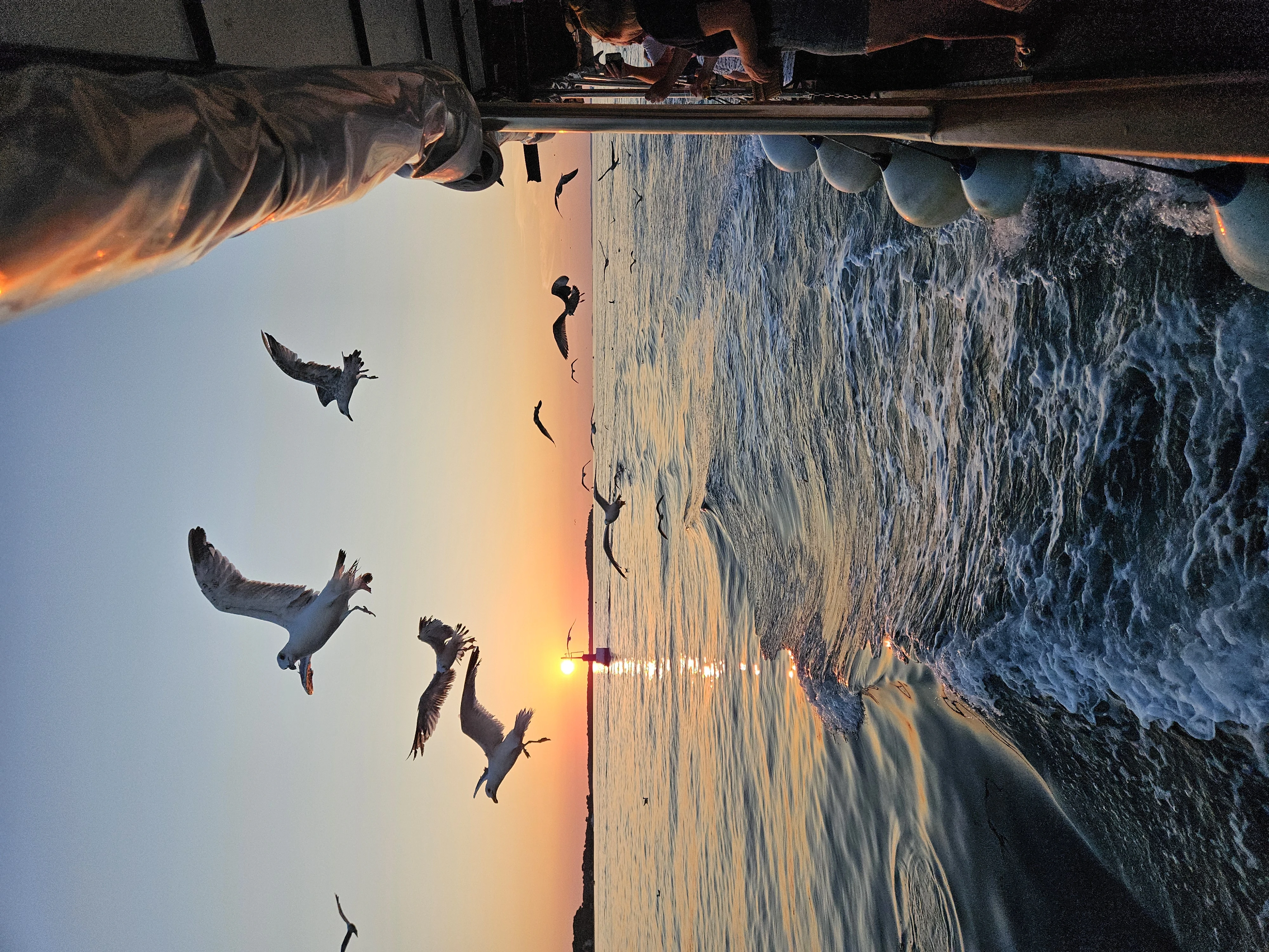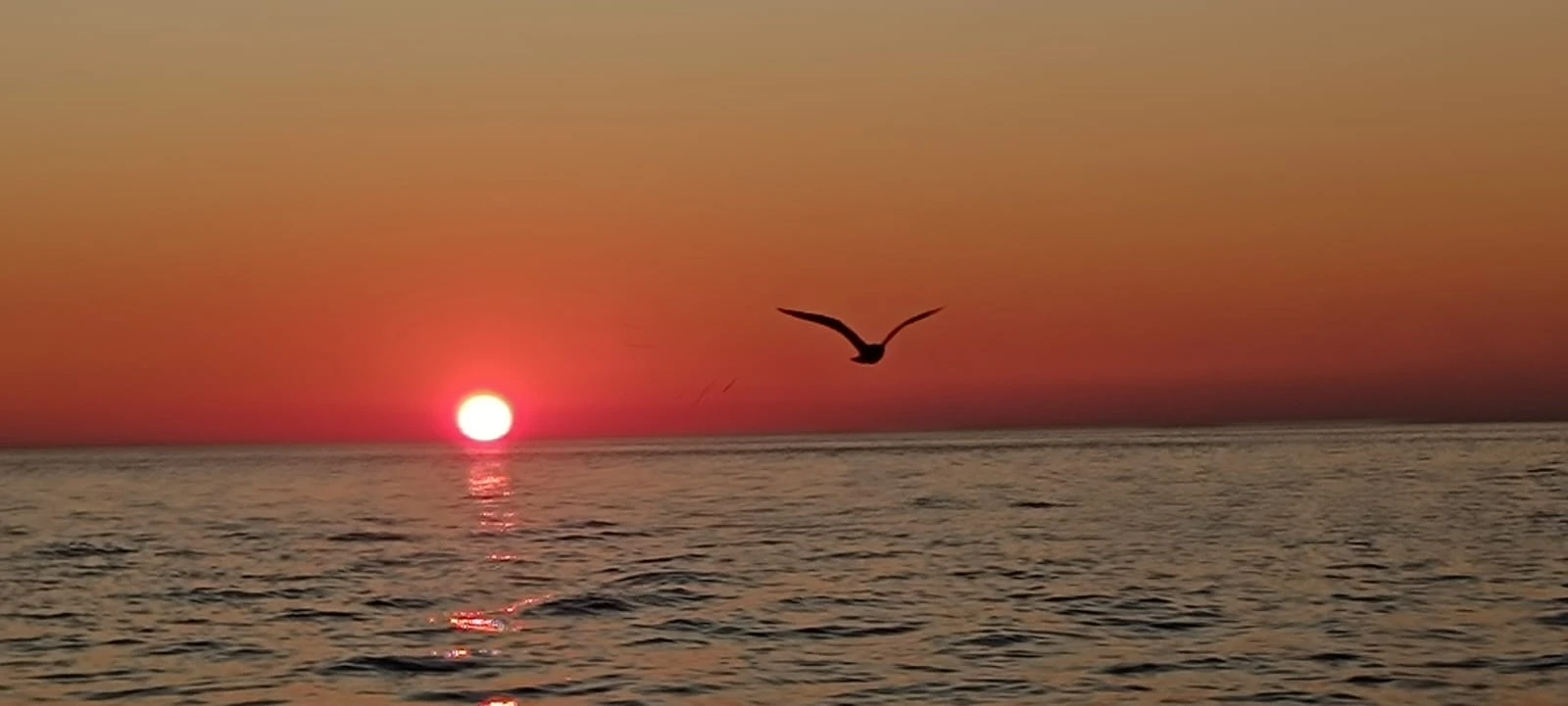 Dolphins & sunset panorama of 14 islands of national park Brijuni