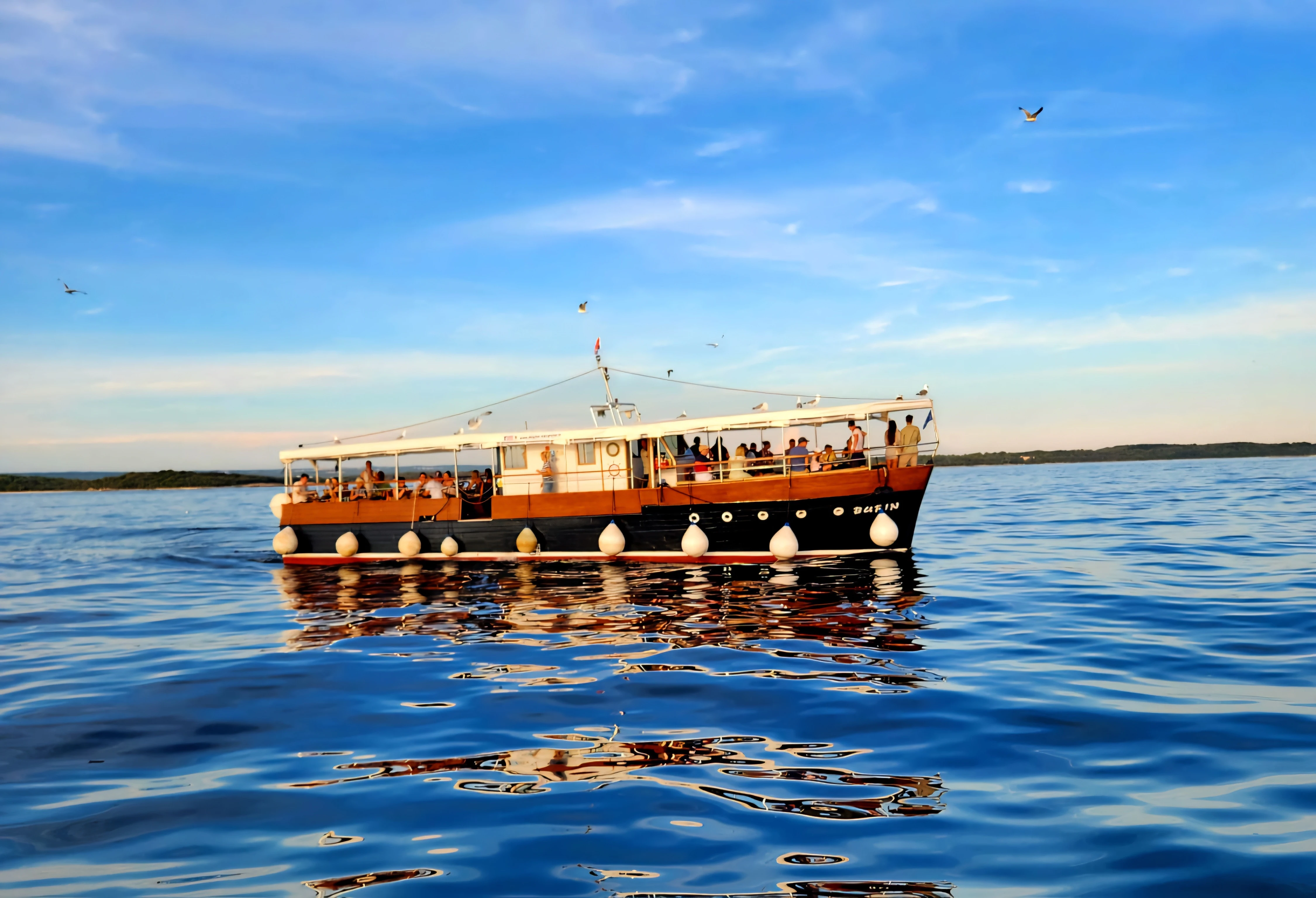 Sail into the sunset and search for the beautiful dolphins. 70% chance to view dolphins in their natural habitat. Panorama cruise around 14 islands of Brijuni.
